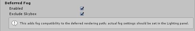 | Exclude Skybox | Enable this checkbox to exclude fog from the skybox. |
